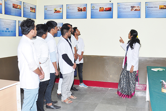 Panchakarma department is a clinical department established to promote quality education to the students, with the motto of "swasthasyaswasthyarakshanamaturasyavikaraprashanam" Panchakarma is the super speciality department of Ayurveda which deals with the treatment modalities like Vamana (therapeutically induced emesis), Virechana (therapeutically induced purgation), Basti therapeutically induced enema – oil and decoction based), Nasya (therapeutic nasal drops), and Raktamokshana (therapeutic blood letting) and all types of Bahyasnehana (external oleation therapies), Swedana procedures (therapeutic sudation procedures) meant for deep and complete cleansing of the system to bring back equilibrium of deranged biohumors. Our department is focussing to provide classical knowledge regarding Panchakarma and its utility for various ailments from Paediatrics to Geriatrics specially emphasisng on Orthopaedic,rheumatology, Neurology, pulmonary and other disorders. The academic facility of our department has various panchakarma procedure models, specimens, informative charts in display and departmental reference library lodges more than 80 books.